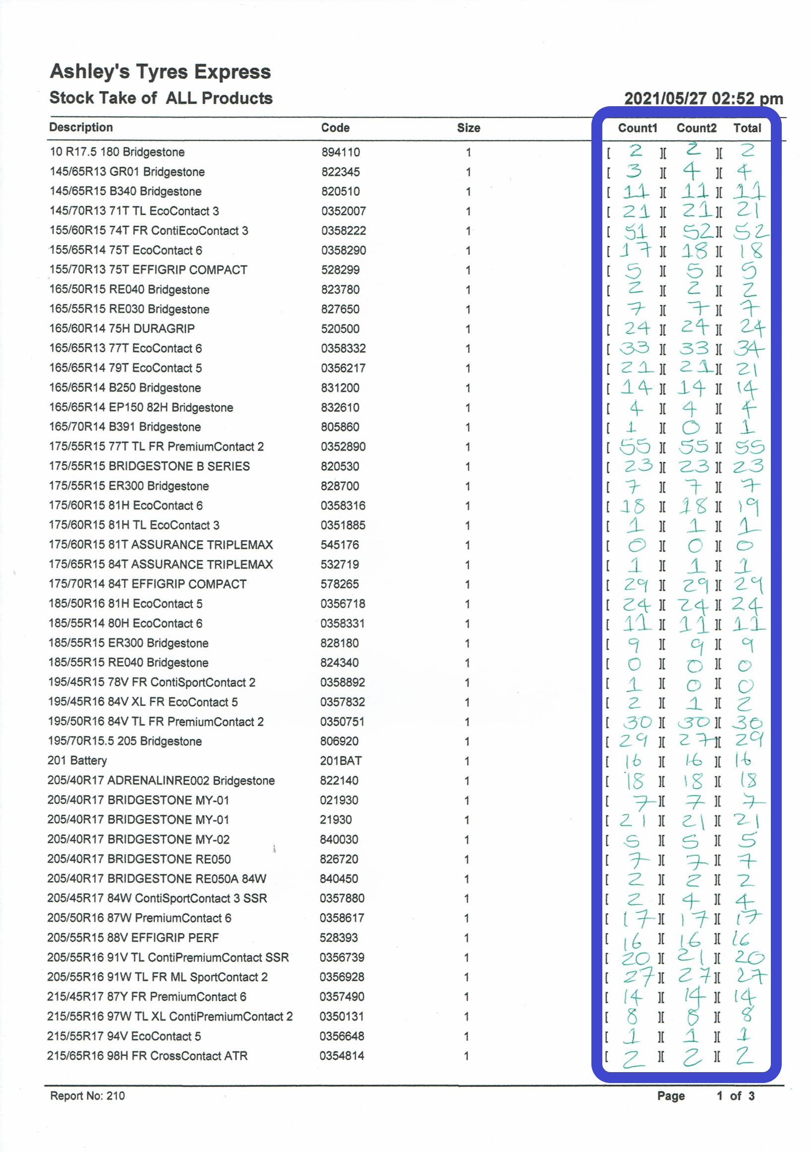 6. Create a stock take using the exact same Product Filters that was applied when report 210 - Stock Take was printed:
