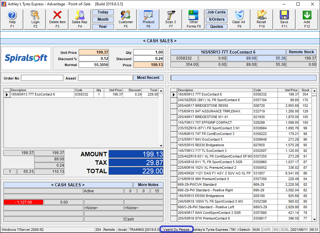 - The name that has been chosen by the user that is logged in (the cashier), will reflect on the saved document, and their sales will reflect on several sales reports, for example Report 101 - Sales by Salesperson. This report can be used to calculate a salesperson's commission and track their sales performance.