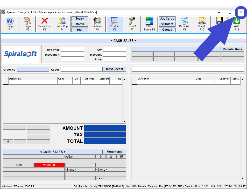 1. Close ALL Advantage Point of Sale and Back-Office windows, by clicking on the close button in the top right corner: