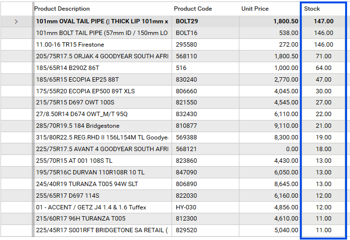 NOTE: the system will automatically sort the products from those with the most quantity on hand to those with the least quantity on hand, according to the search criteria: