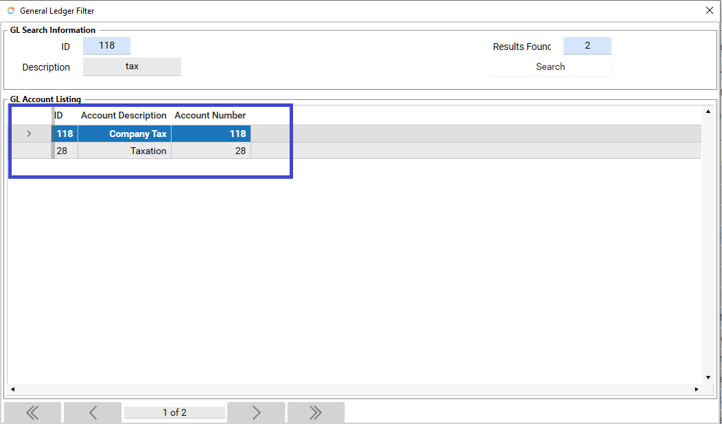 8. From the search results list, double-click the General Ledger account to open and view its detail.